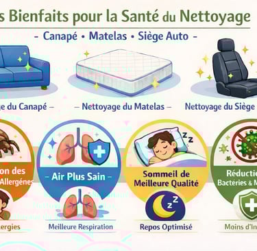En effet, les mouvements à chaque assise sur un canapé ou un matelas mettent en mouvement dans l'air des poussières fines (PM2.5 / PM10), allergènes, cellules mortes, fibres textiles, poils et pollens accumulés au fil du temps qui sont inhalés.